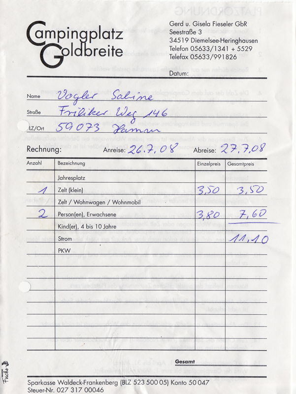 Übernachtung auf dem Campingplatz Goldbreite