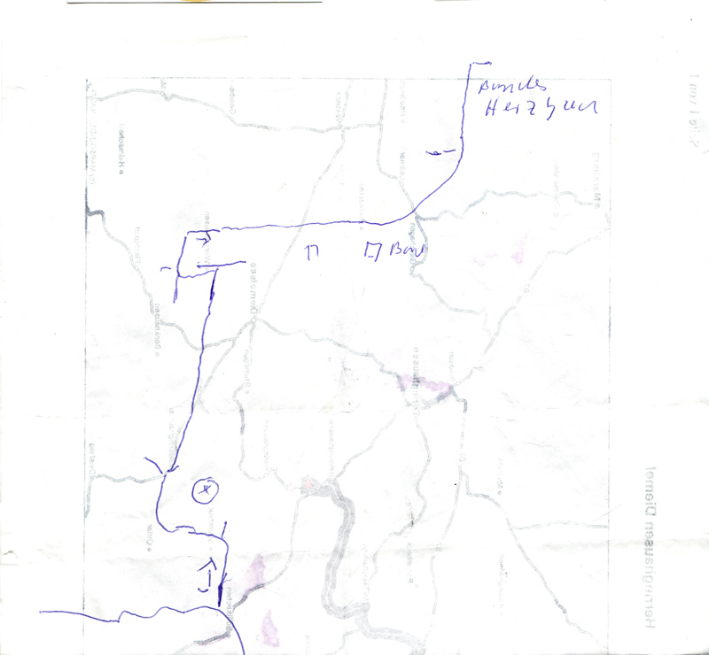 Dank dieser Karte eines Eingebohrenen haben wir uns ca. 10km Umweg gespart und sind direkt an einem Güllesilo vorbei in einem Wald gefahren,